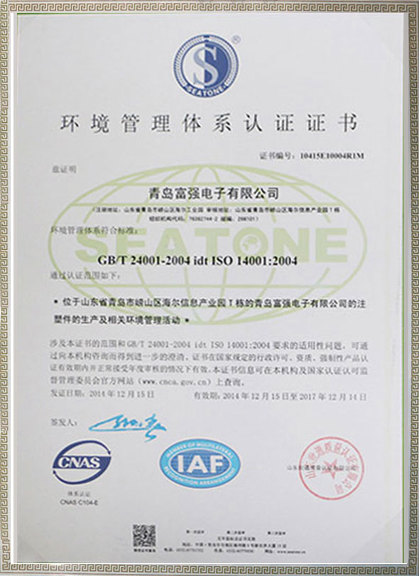 富強(qiáng)先后通過了ISO9001、ISO14001、QS等環(huán)境與質(zhì)量管理體系認(rèn)證。